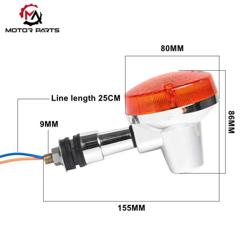 Đèn báo rẽ xe máy GN125 của Trung Quốc từ Max có thiết kế vượt thời gian kết hợp giữa nét thẩm mỹ cổ điển với hiệu suất hiện đại. Đầu đèn tròn đặc biệt kết hợp với khung mạ niken gợi lên hình dáng của một viên đạn cổ điển, làm nổi bật hình tam giác hình ảnh xe Taizi cổ điển của xe. Thiết kế mang tính biểu tượng này xuyên suốt toàn bộ dòng GN125, bao gồm các biến thể như GN125-5F và GN125-3, và đã trở thành biểu tượng bên ngoài nổi bật của xe.
